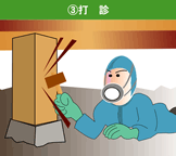 B木部部分を木鎚などで叩いて空洞音がないか調査。