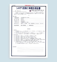 当社のシロアリ駆除は、安心の5年保証。保証期間中に再度シロアリが発生した場合は無料で駆除させていただきます。